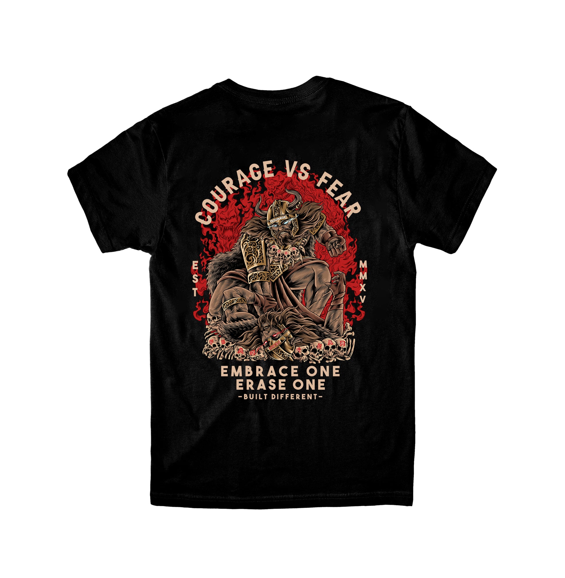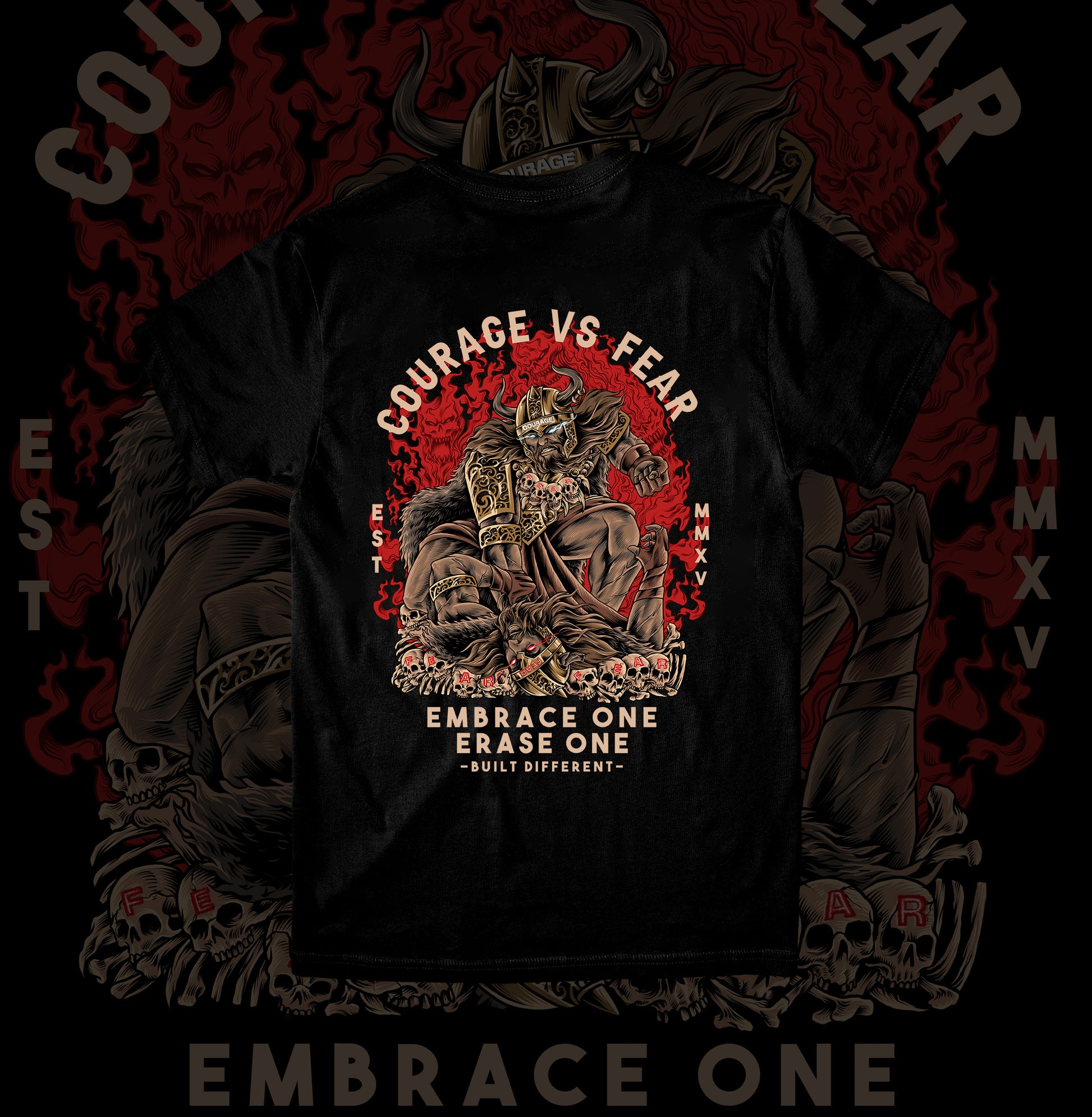 This design represents the never-ending battle we all have inside of us. - Courage vs Fear-