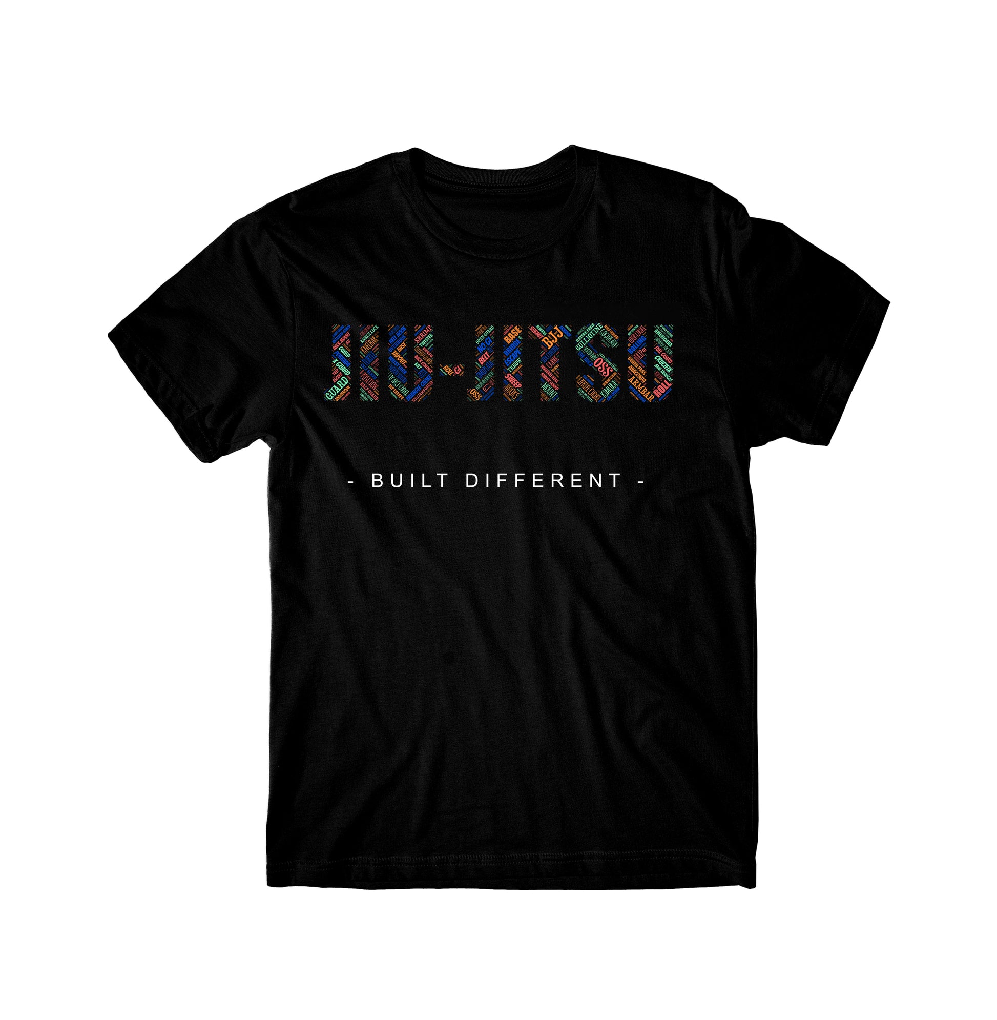 This design has many Jiu-Jitsu terms that make up the word Jiu-Jitsu making it a one of a kind design.